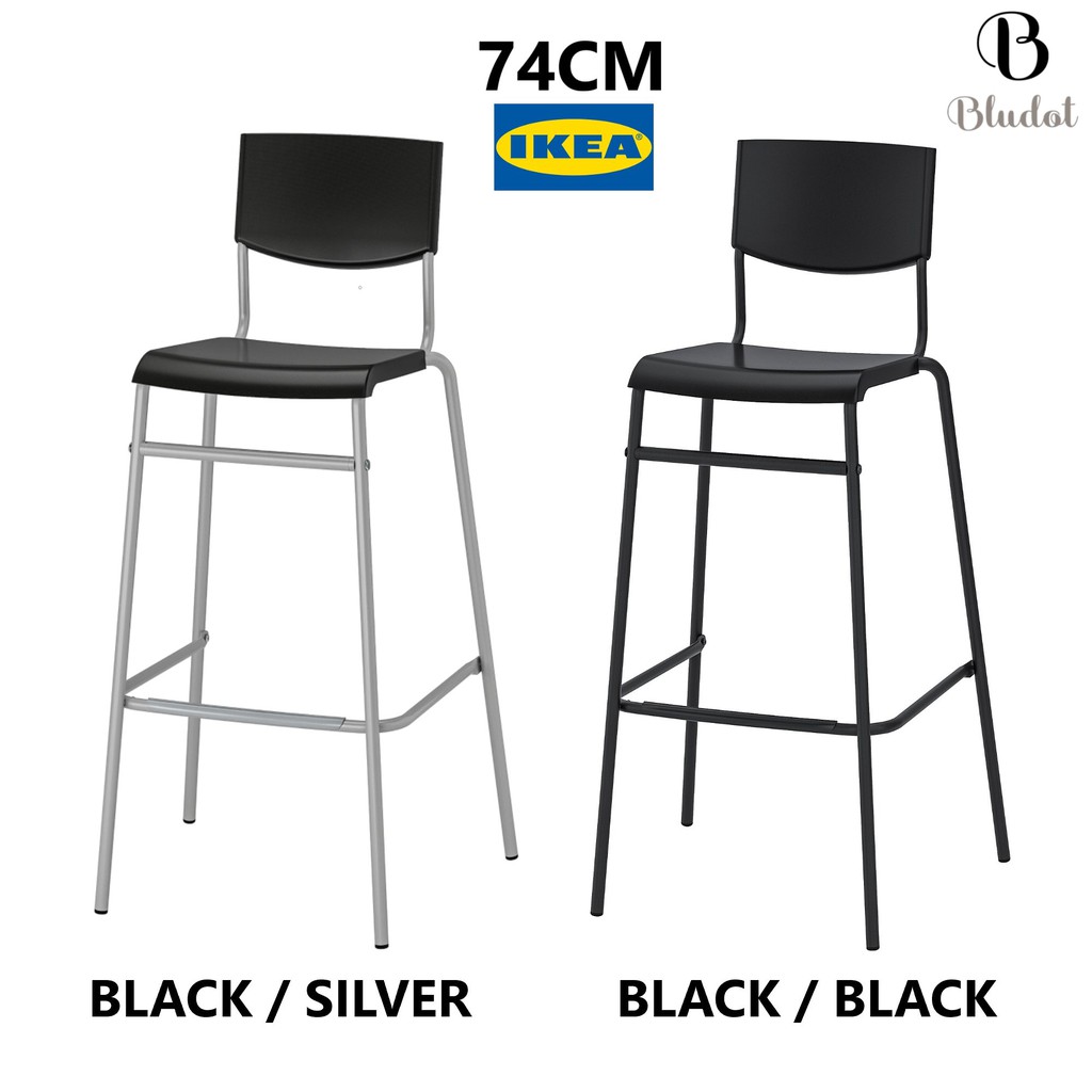 Ikea Stig Bar Stool With Backrest Black Silver Colour 63 Cm 74 Cm Bar Chair Shopee Malaysia